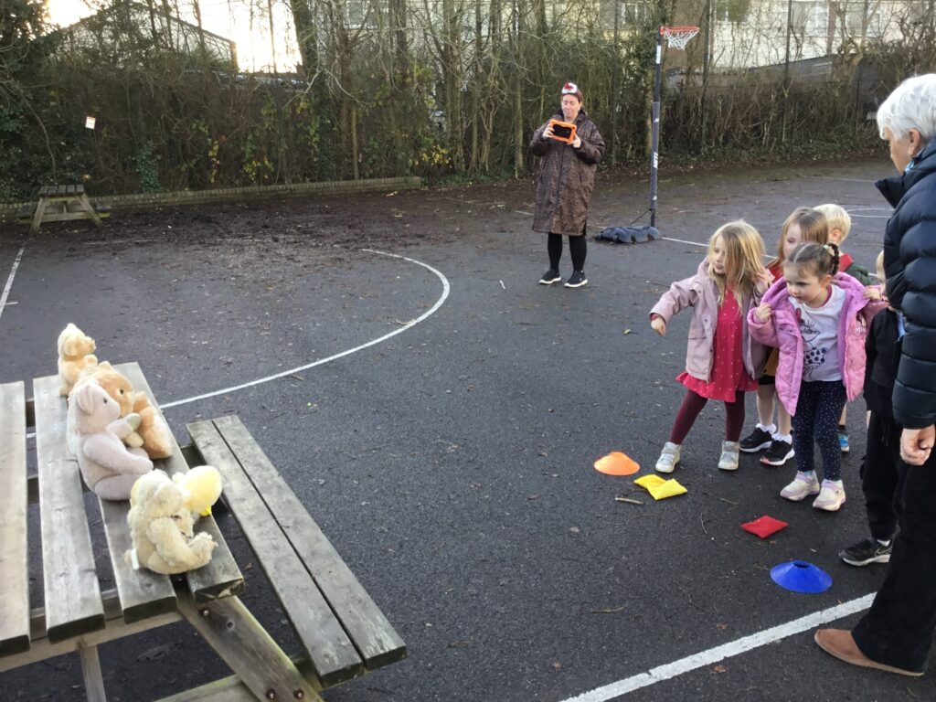 The children were challenged to be reindeer and collect presents, decorate a Christmas tree with hoops, become naughty elves and knock toys off a shelf and throw presents into chimneys for Santa.