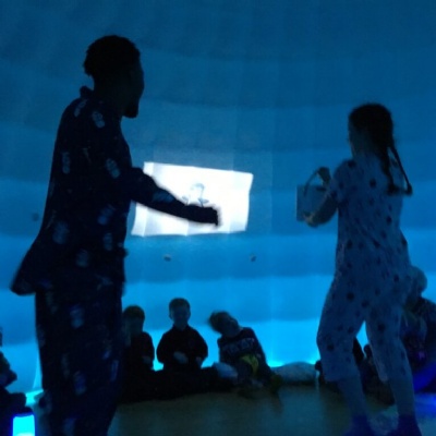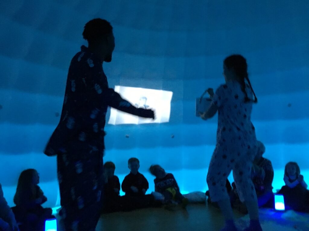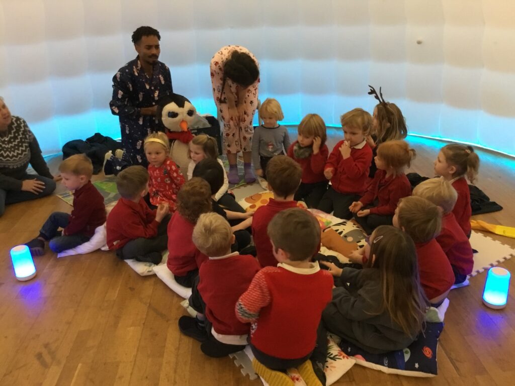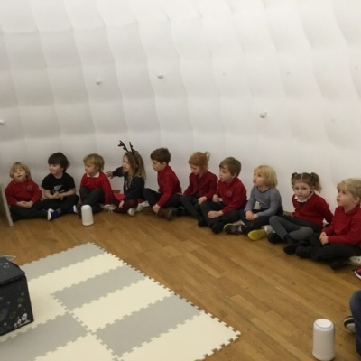 Today, Class One watched a fantastic, sensory, interactive theatre performance within a giant, inflatable igloo.