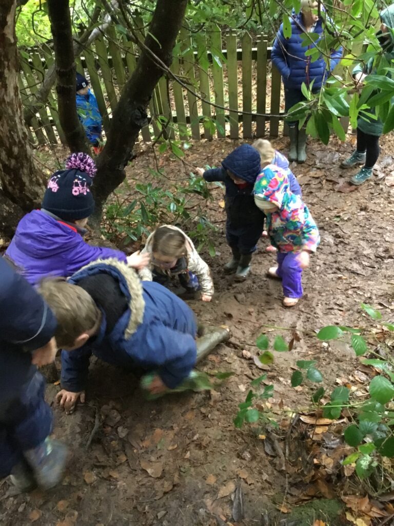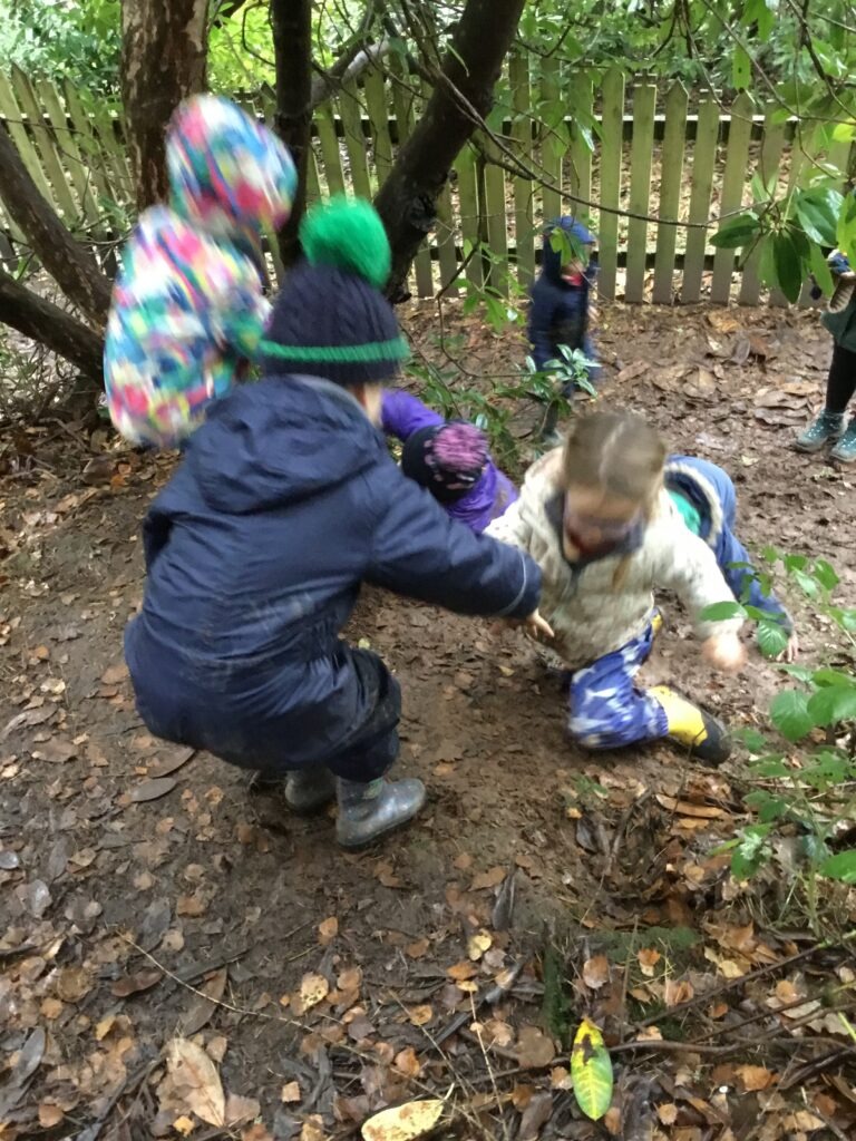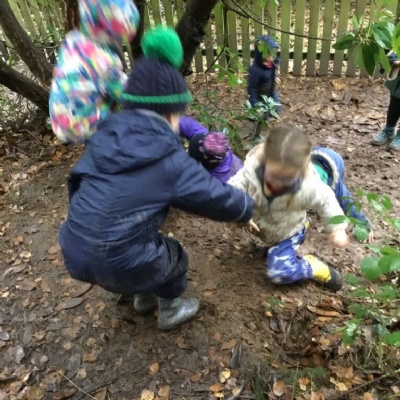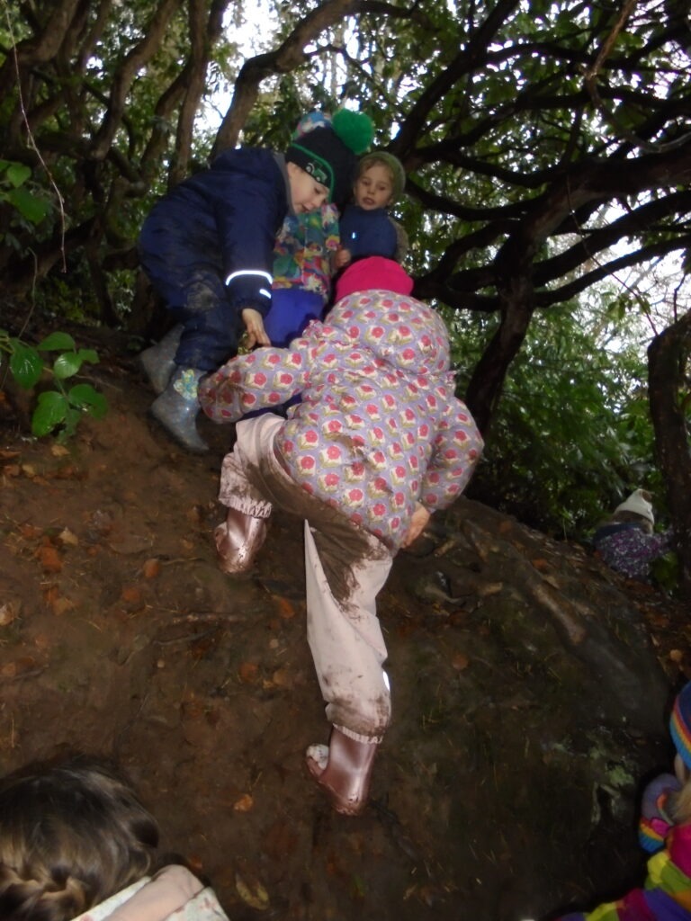 It was our last week at Forest school for this term, so the children chose their favourite places to explore. Some children played on the pirate ship, setting off on adventures to find hidden treasure, some children created nests using natural materials, some children enjoyed climbing up the bank, working together and helping others, some children built dens and some children enjoyed sliding down the very muddy slope. What fun!