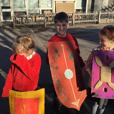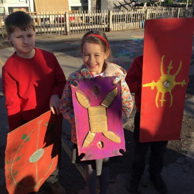 As a part of our Romans topic, class 3 were challenged with making their own Roman shield for homework. They all created amazing shields and should be so proud! We all used our own shields to practice our Testudo formation that we learnt on our trip to Chester.