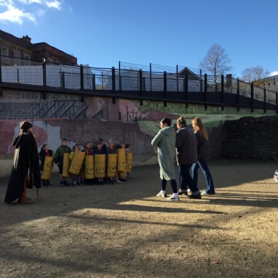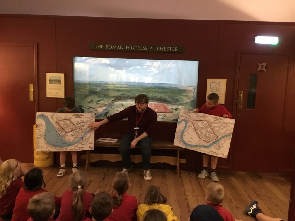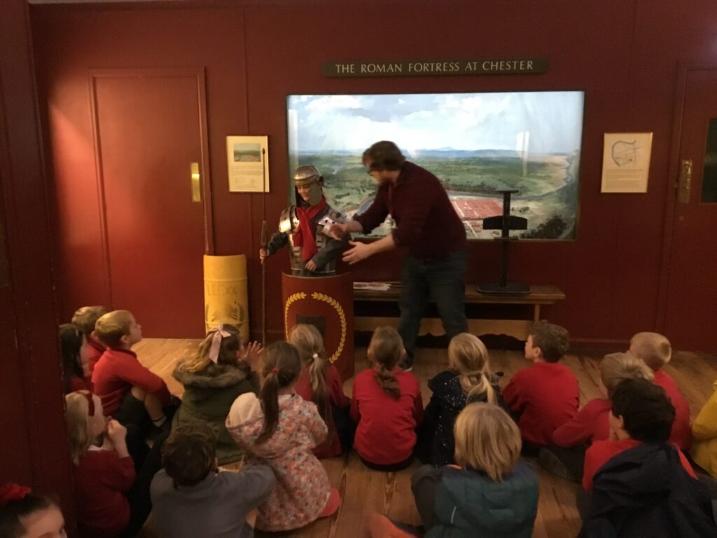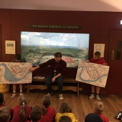 On Thursday, we all travelled to Chester to the Grovesnor Museum where we took part in a Romans workshop and a Roman soldier tour. The children had a fantastic time and were signed of as fit to join the Roman army after their brilliant formation training.