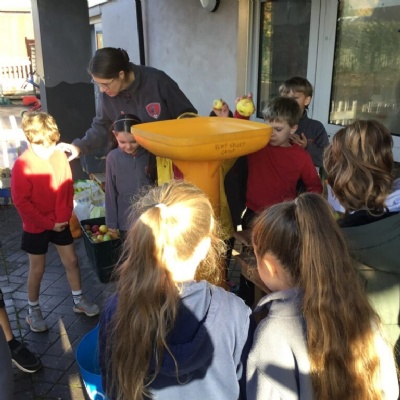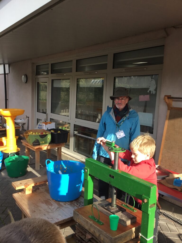 This morning we then got the chance to do some apple pressing. The children thoroughly enjoyed it and we all got to try some delicious fresh apple juice!