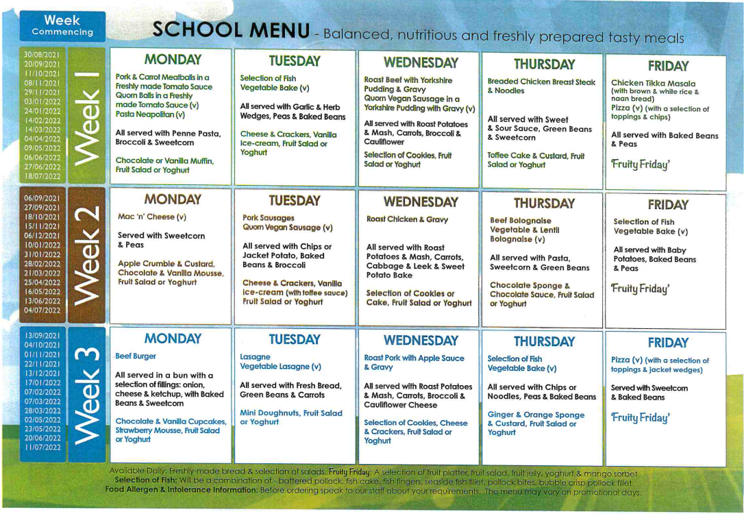 Meals are rotated on a 3 week schedule- all of which can ben seen below, there are also many theme meals across the school year to celebrate events such as world book day with recipes inspired by examples form his books and Chinese New Year.