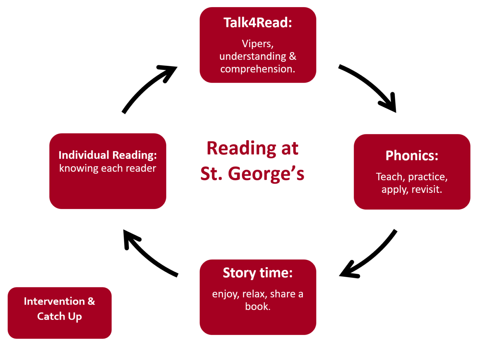 Read about how we teach reading at St. George’s in our Whole School Approach & Phonics and Early Reading Policy.