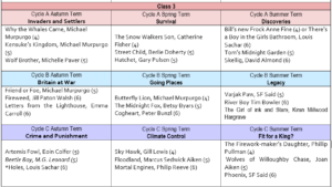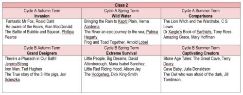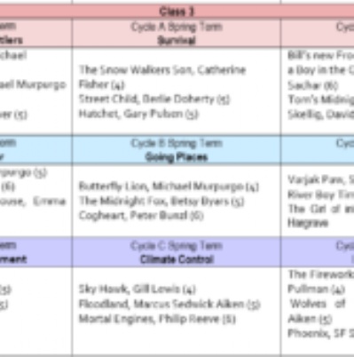 The reading materials that the children interact with have been carefully planned and sequenced using the Pie Corbett Reading Spine, Pie Corbett Page Turners and chosen authors so that over a 2-3 year cycle the children have exposure to a wealth of literature linked to the topic theme.