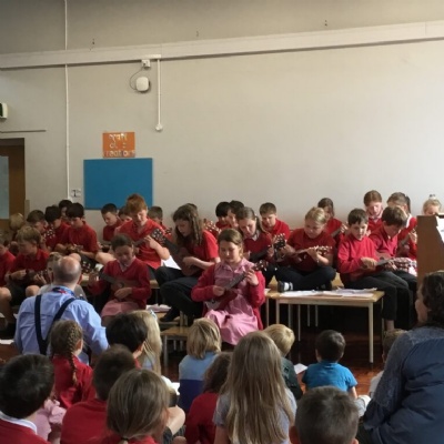 We deliver whole class music tuition at St George’s. Class 2 learn the recorder and Class 3 learn the ukulele.